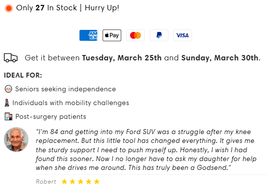 Our car assist offers superior quality and unmatched support. With a LIFETIME WARRANTY, a 90-DAY MONEY BACK GUARANTEE, and durable construction, choose GripStander TM for the best in safe and easy car transfers.